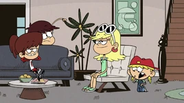Orang tua Zach[] Orang tua Gurdle menjerat keluarga Loud yang tersisa. Tuan dan Nyonya Gurdle tetap tidak berubah di linimasa alternatif. Namun, setelah menyaksikan kemunculan dan hilangnya anak-anak tersebut secara tiba-tiba di pernikahan keluarga Loud, mereka percaya bahwa mereka adalah alien dan memiliki dedikasi untuk menangkap mereka. Mereka juga terbukti membangun pesawat luar angkasa dan memiliki plutonium, yang digunakan Lisa untuk merekonstruksi mesin waktunya untuk melakukan perjalanan kembali ke masa lalu dan mencegah campur tangan saudara-saudaranya di pernikahan orang tua mereka. Tempat[]1216 Franklin Avenue[] Ruang tamu. Lynn dan Rita masih tinggal di 1216 Franklin Avenue, tetapi telah mengalami beberapa perubahan kecil pada eksteriornya dan perubahan interior yang lebih drastis dibandingkan dengan linimasa standar.