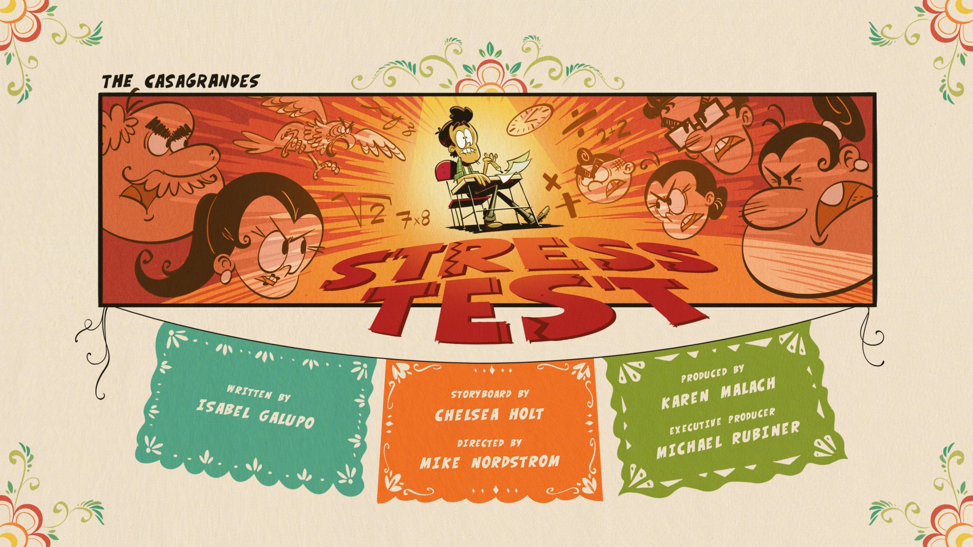 "Stress Test" adalah episode ke-11 dari musim pertama The Casagrandes. Alur[]Keluarga itu mencoba membantu Bobby mengatasi kecemasannya dalam ujian. Sinopsis[]Saat keluarga memainkan permainan lotería (bingo), Carlota dan Bobby tiba di rumah dengan skor ujian BAT (tes akademik besar) mereka. Sementara Carlota mendapat skor tinggi, Bobby akhirnya gagal total. Bobby menjelaskan bahwa dia belajar sangat keras, tetapi ketika dia mengikuti ujian, dia lupa semua yang dia pelajari. Ketika Carlos menyatakan bahwa ini hanyalah kasus kegelisahan dalam ujian, ia mulai membantunya. Carlos mencoba membantu Bobby dalam berbagai latihan. Metode Carlos dalam membantu Bobby adalah dengan membuatnya menjalani beberapa prosedur, seperti berbagai latihan, mengurangi apa yang ia makan, dan membuatnya tidur dalam kondisi dingin yang tidak menentu. Keesokan harinya, Bobby pergi untuk mengambil tes lagi. Beberapa waktu kemudian, keluarga itu mengadakan pesta lengkap, mengantisipasi kesuksesan Bobby. Namun, ketika Bobby kembali, ia mengungkapkan bahwa ia gagal tes lagi. Kali ini, Rosa memutuskan untuk membantunya. Metode Rosa dalam membantu Bobby adalah melibatkan makanan, seperti harus menggosok telur untuk menghilangkan perasaan negatif (yang membuat Ronnie Anne merasa jijik), membenturkan panci dan wajan bersama untuk mengusir roh-roh jahat, menyuruhnya minum secangkir herbal. dan rempah-rempah, dan mengisi tasnya dengan pesona keberuntungan yang tak terhitung jumlahnya. Beberapa waktu kemudian, Bobby tiba kembali, dan dengan kekecewaannya, ia gagal tes lagi. Kali ini, Carlota memutuskan untuk membantu. Metode Carlota untuk membantu Bobby adalah dengan membuatnya berpakaian untuk acara itu. Setelah potong rambut dari Margarita, mengenakan setelan jas dan menemukan pose yang tepat, Bobby pergi, tetapi ketika kembali, ia gagal ujian lagi, karena ia gagal tiba di ruang ujian tepat waktu. Menyadari bahwa harapannya untuk mendapatkan skor tes BAT yang baik tidak ada harapan, Bobby secara resmi menyebutnya berhenti. Lihatlah sisi baiknya, setidaknya dia mengikuti ujian. Ketika Bobby bekerja di toko, Ronnie Anne, yang mencoba meyakinkan Bobby untuk tidak menyerah, menemukan keterkejutannya bahwa Bobby memiliki keterampilan matematika terbaik dalam hal harga dan kupon. Ini menyebabkan Ronnie Anne menyadari bahwa Bobby memiliki konsentrasi penuh hanya ketika dia berada di toko. Sebagai hasilnya, dia menemukan cara untuk membantu Bobby keluar. Ketika Bobby mengikuti ujian, ia membawanya dalam tiruan toko, yang membuat siswa lain kesal, karena ia terus-menerus berbicara kepada dirinya sendiri. Saat keluarga mengawasi dari luar sekolah, mereka senang bahwa Bobby akhirnya dapat lulus ujiannya tanpa masalah. Pemeran[]