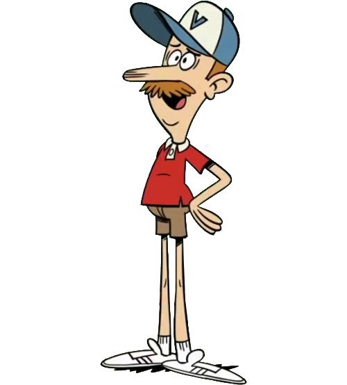 Dia memiliki rambut cokelat muda, dan kumis yang panjang berwarna coklat. Dia memakai topi biru dan putih dengan huruf "V" di atasnya, kemeja merah, celana pendek kargo gelap, kaus kaki putih tinggi, dan sepatu kets putih.