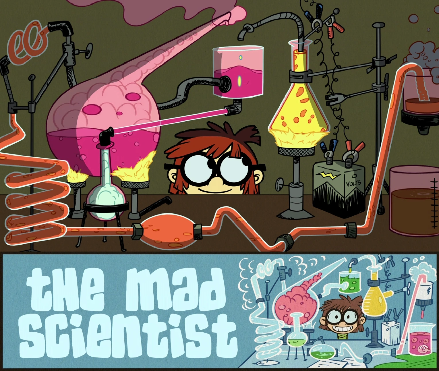 "The Mad Scientist" adalah episode ke-16 dari musim ketiga, dan episode ke-117 The Loud House. Alur[]Lisa diundang untuk bekerja di sebuah institut dan melarikan diri dari keluarganya yang gila. Sinopsis[]Lisa sedang menjelaskan kepada beberapa ilmuwan tentang teori Einstein tentang perjalanan waktu melalui lubang cacing. Dia menjelaskan bahwa dia hampir mencari cara untuk memecahkan teori tersebut, tetapi terus-menerus disela oleh saudara-saudaranya yang meminta nasihatnya tentang berbagai subjek. Ketika Lisa menjelaskan bahwa dia mengalami kesulitan melakukan penelitian karena gangguan saudara-saudaranya, salah satu ilmuwan, Dr. J, bertanya apakah dia ingin mengunjungi institut sains, karena dia dapat melanjutkan studinya tanpa gangguan, dan Lisa menerima. Lisa akhirnya menemukan tempatnya: di institut. Di institut sains, Lisa diberi tur keliling institut, dan melanjutkan studinya di lab riset institut. Senang dengan apa yang dilihatnya, Lisa menyanyikan lagu tentang semua keajaiban institut. Setelah menjelaskan teori perjalanan waktu Einstein kepada para ilmuwan, Lisa bersiap untuk kembali ke rumah, tetapi Dr. J menawarkan pilihan untuk tinggal di institut secara penuh waktu, dan Lisa mempertimbangkan hal ini. Lisa menelepon orang tuanya melalui obrolan video, dan menjelaskan keinginannya untuk tinggal di institut tersebut, yang membuat keluarganya kaget. Lisa, yang mengharapkan reaksi semacam ini, menunjukkan kepada mereka bagan yang menjelaskan bahwa 97% dari susunan psikologisnya terdiri dari upaya ilmiah, sedangkan keterikatan emosionalnya dengan keluarganya hanya 1%. Menyadari betapa dia menghargai penelitian dan berpikir dia cukup "mandiri", Rita dan Lynn Sr. setuju untuk membiarkan Lisa tinggal di institut tersebut. Saat bekerja, Lisa merasa lapar dan memutuskan untuk makan malam. Mengharapkan makanan yang layak, Lisa kecewa mengetahui bahwa makan malamnya adalah kubus agar-agar yang terdiri dari vitamin untuk efisiensi otak yang diperlukan dan es krim yang disuntikkan ke dalam tubuhnya alih-alih makan es krim yang sebenarnya. Belakangan, Lisa ingin menonton The Dream Boat bersama rekan-rekannya, tetapi karena tidak tertarik dengan pertunjukan itu, mereka meninggalkannya. Di kamarnya, Lisa sedang membongkar tasnya ketika dia menemukan sebotol selai kacang yang dicampur dengan agar-agar dengan catatan terlampir. Melihat itu dari Lincoln, karena dia akan membuat sandwich PB&J sebelum tidur, Lisa mencoba membuat sandwich PB&J. Banyak kekecewaannya, dia menemukan bahwa dia tidak dapat melakukannya. Saat bersiap-siap untuk tidur, Lisa tidak bisa membuka ritsleting piyamanya, karena Leni biasanya melakukannya untuknya. Saat Lisa berbaring di tempat tidur, dia tidak bisa tidur. Dia ingat bagaimana Lori akan membacakan cerita untuk Lily yang tidak hanya akan membantunya tertidur, tapi juga Lisa. Saat tidur, Lisa mengalami mimpi buruk dan mencoba memberi tahu orang tuanya. Sayangnya, karena dia ada di institut, mereka tidak ada di sana untuk menghiburnya. Lisa, yang terpaksa tidur dengan kerangka model untuk kenyamanan, mulai menangis, menyadari bahwa itu hanya bisa berarti satu hal. Memanggil keluarganya lagi keesokan harinya, Lisa menarik kembali apa yang dia katakan tentang susunan psikologisnya dan menunjukkan kepada mereka versi terbaru dari bagannya, di mana keterikatan emosionalnya dengan keluarganya melebihi pengejaran ilmiahnya. Dia menjelaskan bahwa dia merindukan keluarganya dan mengungkapkan keinginannya untuk kembali. Keluarganya, yang senang mendengar kabar baik, mendorongnya untuk kembali ke rumah. Sayangnya, Lisa menjelaskan bahwa jika dia pulang sekarang, reputasinya akan rusak. Ketika Leni mengemukakan gagasan bahwa Lisa harus melakukan perjalanan kembali ke masa lalu sebelum dia pergi ke institut, Lisa, menyadari bahwa dia memecahkan teori perjalanan waktu Einstein, mencoba melakukannya. Lisa melakukan perjalanan kembali ke masa lalu. Setelah menyiapkan mesin waktunya, Lisa mengaktifkan dan memprogramnya untuk dikirim kemarin. Portal berhasil terbuka, dan Lisa melompat masuk. Dia dipindahkan ke hari sebelumnya, tepat sebelum Dr. J menawarkan kesempatan untuk mengunjungi institut. Ketika Dr. J bertanya pada Lisa tentang kesempatan ini, Lisa dengan sopan menolak, mengatakan bahwa dia baik-baik saja di rumah. Lisa, meskipun diakui kesal dengan kelakuan beberapa saudara kandungnya, lebih dari senang menjadi "rumahku surgaku". Pemeran[]