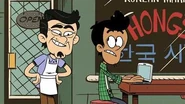 "Bo Bo Business" is the thirty-fourth episode of the first season of The Casagrandes. Plot[]After a disagreement with Abuelo, Bobby goes to work for Mr. Hong to try out his new business ideas. Synopsis[]In the Casagrande mercado, Bobby is showing Hector a table he set up that allows customers to use free wi-fi, saying that this could boost business. However, Hector disapproves of this idea and shoos Maybelle and Vito away, who were using the table. Bobby tries to present some more of his ideas to improve the mercado, but Hector shoots down all of them, saying that he has been running the store his way for a very long time and wants to keep it that way. Feeling unappreciated, Bobby decides to take his ideas elsewhere. While moving his wi-fi table to another location, Bobby asks himself where dinosaurs are, and while he tries to look up the answer, Injae Hong, the owner of the Korean market nearby, is impressed that Bobby put a table outside his store. When Bobby says that this can help bring customers, Mr. Hong says that needs to hire someone with great ideas and a positive behavior, and Bobby immediately take the position. Bobby works for Mr. Hong. As Bobby works for Mr. Hong, letting the customers use free wi-fi and serving them Korean food, Hector is secretly revealed to be spying on Bobby, question why he would work for Mr. Hong. At nighttime, tensions between Bobby and Hector rise at dinner time, while the rest of the Casagrandes do nothing but look on with bewilderment. The next day, Carlota reveals to Hector that Bobby made a commercial for Mr. Hong's. Suddenly, a line forms at Mr. Hong's, and Bobby brags that all the store's success is because of his ideas, and leaves after insulting Hector by calling him a dinosaur. At Hong's, Mr. Hong reveals that because business is booming, he can finally take a day off, and plans on going to Great Lakes City Waterpark. After being handed the keys to the store, Bobby realizes he's been put in charge, and decides to unleash his biggest ideas. The next day, as Hector tries to come up with a jingle for his now barren store, Maria arrives and says to Hector that Bobby only wants to make his mark in the mercado and should at least give his ideas a chance, but Hector is still adamant about running the store his way. At Hong's, Bobby reveals to the customers that while they shop, they can cuddle a bunny while doing so. The plan goes well with the customers, but when Vito arrives, asking if he can bring Big Tony and Little Sal with him, Bobby says that only bunnies are allowed. When Vito states that he plans to do his business elsewhere, Bobby relents and lets him bring the dogs in. However, this causes the other customers to ask if they can bring their own pets, and Bobby agrees. When Ronnie Anne questions if he's going too far, Bobby assures her that the customer is always right. Unfortunately, the animals have run rampant in the store, and Bobby is unsuccessful in calming them down. Ronnie Anne warns Hector that Bobby is in danger, but Hector decides to just watch him suffer. As Hector looks at Bobby being smothered by the bunnies, Hector is initially reluctant to help out, but unable to see him suffer anymore, he and Ronnie Anne proceed to pull him out and get to work on rounding up the bunnies to get them back in their cages. Suddenly, as Bobby and Hector celebrate capturing all the bunnies, Mr. Hong arrives and is horrified to see his store in ruins. Angry that Bobby caused trouble while he was away, Mr. Hong tells him that he is fired. Welcome to the Casagrande mercado! At the mercado, Bobby admits to Hector that his ideas are terrible, and Hector says that not every one of them guarantees success, but that shouldn't stop him from trying. After Hector admits that he was jealous of Bobby while he was working for Mr. Hong, he apologizes for not taking Bobby seriously, and Bobby apologizes in return for calling him a dinosaur earlier. Rehired, Bobby and Hector get to work on making a commercial for the mercado with the help of the rest of the family, and it ends up being a success, as customers begin shopping there. Cast[]