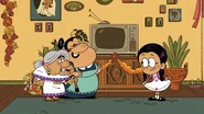Lupe is a minor character in The Casagrandes. She’s the mother of Rosa Casagrande. Appearance[]She’s an elderly Mexican woman of medium height with light grey hair tied in bun and thick black eyebows. She wears white sleeveless dress, short white poncho with edges in purple and light blue triangles, brown shoes, golden bracelets and golden earrings with round blue jewels. Despite being an elderly woman she is very strong to the point where she can defeat all her descendants wrestling. Personality[]Lupe is a Mexican traditionalist. She encourages her other family members to share on the tradition. When she discovered that her great-grandchildren were not raised as Mexicans, she was shocked to the point of getting a heart attack. However she changes her mind, realizing that Mexican tradition is about family more than speaking Spanish, wearing traditional outfits and eating spicy food. Like her daughter, she is very active despite her old age. Trivia[]