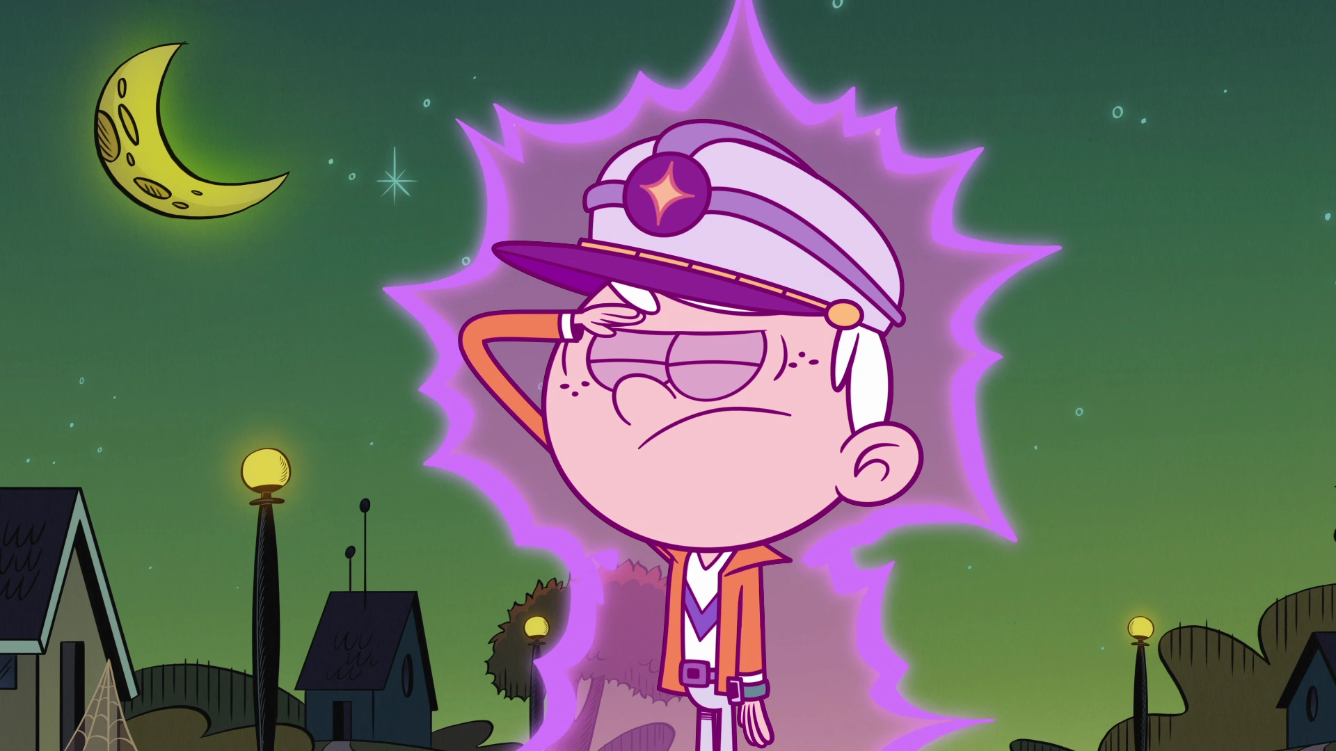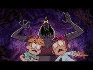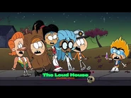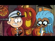 "Close Encounters of the Nerd Kind" is the twentieth episode of the eighth season, the three-hundred-fifty-third episode, and the second hour-length episode of The Loud House. Plot[]Dressed as the intergalactic crew from their new favorite movie, Planet Protection Patrol, Lincoln and his friends are ready to trick or treat. But things take an eerie turn when people around Royal Woods start disappearing. Synopsis[]S8E11[]Act I[] The Planet Protection Patrol. It's Halloween night in Royal Woods, and Lincoln is prepared to head out and meet his friends, who are all dressed as the characters of an old sci-fi movie they've become obsessed with named Planet Protection Patrol. Just before he leaves, Lucy arrives and tells her brother to come out so he can test out their haunted house, which has the parents and the older sisters as the house's jump-scares. Despite all the elaborate planning they put together, Lincoln is unfazed throughout the entire experience, as he comments that he's already seen everything that's been done before. At that moment, Lynn and the remaining younger sisters arrive back home after trick-or-treating, and Lincoln exits to meet up with his friends. As Lincoln and his friends play up to their characters' roles (with Zach revealing that he has a bag full of legit alien-fighting equipment), the sisters comment that their costumes will make them an easy target for bullies, but Lincoln dismisses their claims, and they proceed to ride away on bikes. Soon enough, Lincoln and his friends proceed to go from door to door and get lots of candy. Suddenly, the group is ambushed by two figures wearing hockey masks, who quickly reveal themselves as Chandler and Trent. At that moment, Chandler finds one of the devices on the ground, which Zach claims is a cosmic communicator. Despite Zach warning him not to activate it, Chandler proceeds to do so while simultaneously mocking their costumes. Eventually, Chandler gives the device back, and they leave. Afterwards, the group proceeds to head over to Cheryl and Meryl's condo, but unbeknownst to them, a large shadow looms in from behind them. Arriving to the Chateau Royal Condos, the gang approaches Cheryl and Meryl's door, but when they knock, the door opens itself. After calling out their names with no response, the group enters the apartment to find their TV playing static, their dinners (an unusual yellow, slimy substance) are still warm, and the bowl of candy is left unattended. Despite the unusual nature of this situation, the group proceeds to not think too much about it and prepare to go to Flip's. Back at the Loud House, the sisters discover Darcy arriving, dressed as a pirate. Thinking she'll be easily scared due to her young age, everyone quickly gets themselves into position. Upon ringing the doorbell, Darcy is let in, and the Louds attempt to scare her, but Darcy is more amused by everyone's costumes and practical effects, and in the end, she's more happy than scared. Because of the dismal results, Lucy proclaims that this might be their worst Halloween ever. Act II[]At Flip's Food and Fuel, Flip and Nacho (dressed as a hot dog) are digging up their stash of candy in order to give away. After Flip lets Nacho leave to go trick-or-treating, the store lights suddenly begin to flicker, and Flip is attacked by an unseen assailant. Later, the gang arrives to the Food and Fuel, where they discover that Flip is missing. After picking their pieces of candy (which they quickly spit out due to their old age), the gang begins to suspect that something fishy is going on when they discover the situation is the same as what they witnessed at Cheryl and Meryl's. Suddenly, Rusty slips on a mysterious yellow slime (which appears to be the same as what was seen at the condos), but before the group can ponder what exactly it is, Lincoln discovers that it's nearly 8:00 PM, and he needs to get back home by then, but says that they might have enough time to hit one more house. The residents of Royal Woods begin disappearing... As the gang rides off to their next destination, they suddenly encounter Trent, who informs them that Chandler has gone missing after he left to take a whiz in a bush. At this point, the gang comes to realize that something is happening, as people are disappearing one by one, on top of the streets being unusually barren. After a quick false alarm from Mrs. Bernardo, the gang discovers Trent's hockey mask and boots (the latter of which is mysteriously smoking), and when Zach picks up the boots, the same yellow slime is stuck beneath them. Fearing for the worst, Zach performs a quick test to see if the substance contains alien DNA, and his hypothesis is proven correct when it changes from yellow to purple. Now knowing that there are aliens in their midst, Lincoln, after getting a call from Rita to come back home, tells his family that there are aliens in Royal Woods. Suddenly, the doorbell rings, and Rita and Lynn Sr. answer it (with Leni taking their picture). Suddenly, the visitor lets out a snarl, and it immediately attacks the Louds. Frantically racing home, Lincoln enters his house, only to discover nobody present. Stella discovers Leni's photo on the floor, and it develops to reveal what is to be feared: a giant, yellow alien with three eyes pointing a blaster at the Louds. Realizing his family has been abducted by the aliens, Lincoln screams in anguish. S8E12[]Act III[]Racing over to the police station, the gang frantically tries to tell the police that there are aliens in Royal Woods and need their help in stopping them so they can rescue the people they abducted. Officer Schoffner, seeing the gang in their Planet Protection Patrol costumes, agrees to help, being a fan of the movie as well, but it quickly becomes apparent that Schoffner thinks that they're playing pretend. Seeing how the police are of no help, Lincoln deduces that the only ones who can stop the aliens are themselves. Suddenly, a meteor comes hurling towar