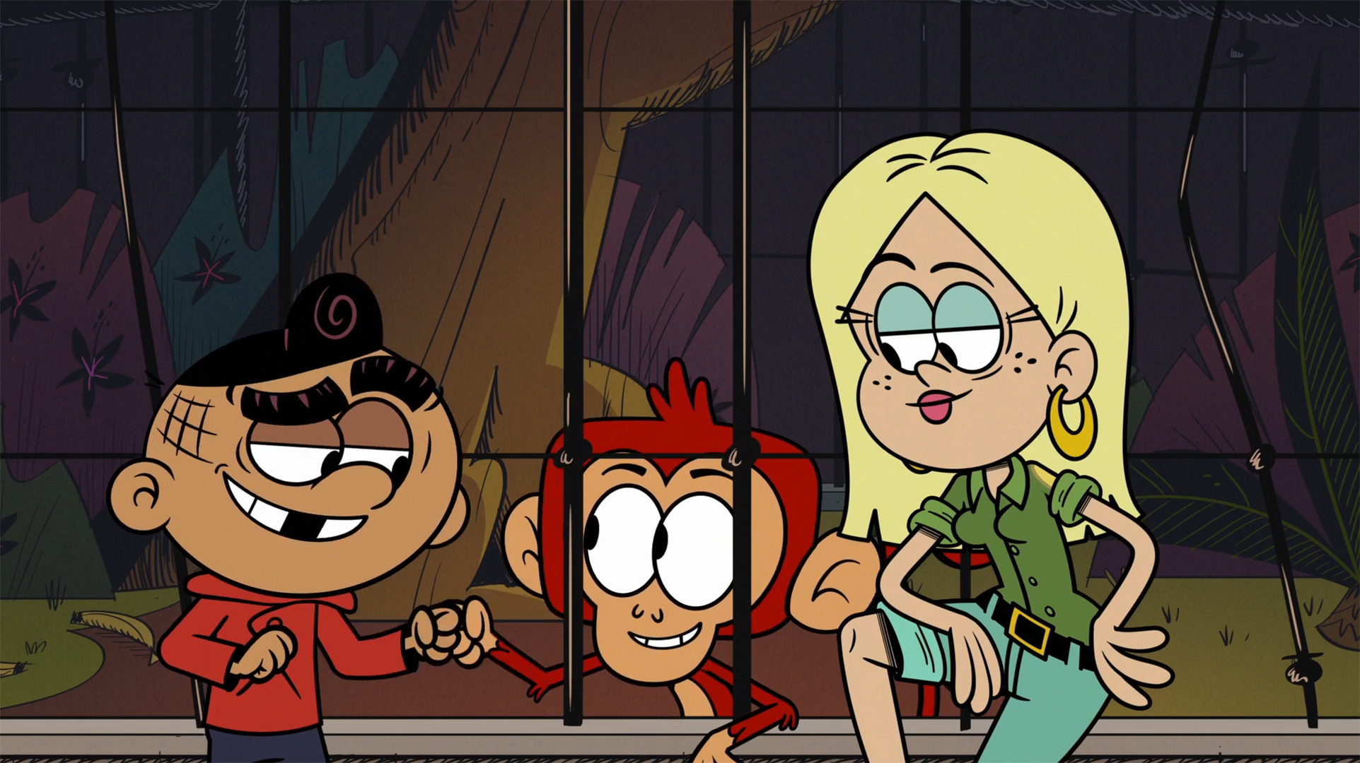 "How to Train Your Carl" is the twelfth episode of the first season of The Casagrandes. Plot[]Carl gets lost in the city zoo after sneaking away from his family to search for a Komodo dragon. Synopsis[]At the Casagrande apartment, Ronnie Anne, Carl, and CJ are getting ready for a sleepover at the zoo after being invited by Becca. As they pack, Carl expresses some desire to see Keyon, the zoo's Komodo dragon. Night tour of the zoo. At the Great Lakes City Zoo, Ronnie Anne, Carl, CJ, Sid, and Adelaide are sitting on the tour bus, waiting for Becca to arrive. At that moment, Becca arrives on an elephant named Bitsy. After jumping off, Becca starts the tour while Stanley drives the car. Carl asks when they can see Keyon, but Becca informs him that Komodo dragons are diurnal, meaning they're only awake during the day, much to his disappointment. The tour starts at the monkey habitat, and as Becca introduces the monkeys, Carl quickly puts together a fake double on the car to fool the others into thinking it's him. However, after putting up his fake double, a fifth monkey named Nico, spotting Carl's stash of beef jerky in his pockets decides to put up a fake double and jumps out the cage to chase after Carl. The moment the two leave, the others exit the monkey habitat and continue on with the tour. As Carl searches for Keyon, he runs into trouble on occasion, such as wandering into a dark cave full of glowing eyes, accidentally running into a pile of poop, and getting sprayed by skunks. Meanwhile, as the group continues with the tour, they realize Carl's charade and Becca goes to find Carl while everyone else continues with the tour. As Carl continues to search for Keyon (and occasionally run into trouble with Nico), a giraffe suddenly picks them up and places them on the right path to the Komodo dragon habitat. As Carl and Nico proceed, they are nearly caught by Becca. After distracting her away, they arrive at Keyon's habitat and Carl attempts to wake him up. However, as Carl tries to wake Keyon up, a strip of beef jerky flies out of his jacket and lands right next to Keyon, causing Nico to go after it. Carl tries to tell him to get out of there, but Nico is too busy eating the snack to pay attention, especially after he unknowingly wakes Keyon up after throwing the wrapper on him. Realizing the danger Nico is in, Carl has no other choice but to call for help, and Becca and Bitsy arrive immediately. While Bitsy looks after Carl, Becca manages to stall Keyon long enough to get Nico out of his predicament and she immediately calms the reptile down with a bone. "Adios monkey." As Carl tells the others the story of his adventure, Becca makes an offer with Carl to make up for abandoning the group: he works at the zoo for a few days in order to understand animals more and to know why the zoo has rules. Knowing that he can still see Keyon, Carl gladly accepts. After getting that settled, the group heads to the campgrounds so they can go to sleep. Cast[]