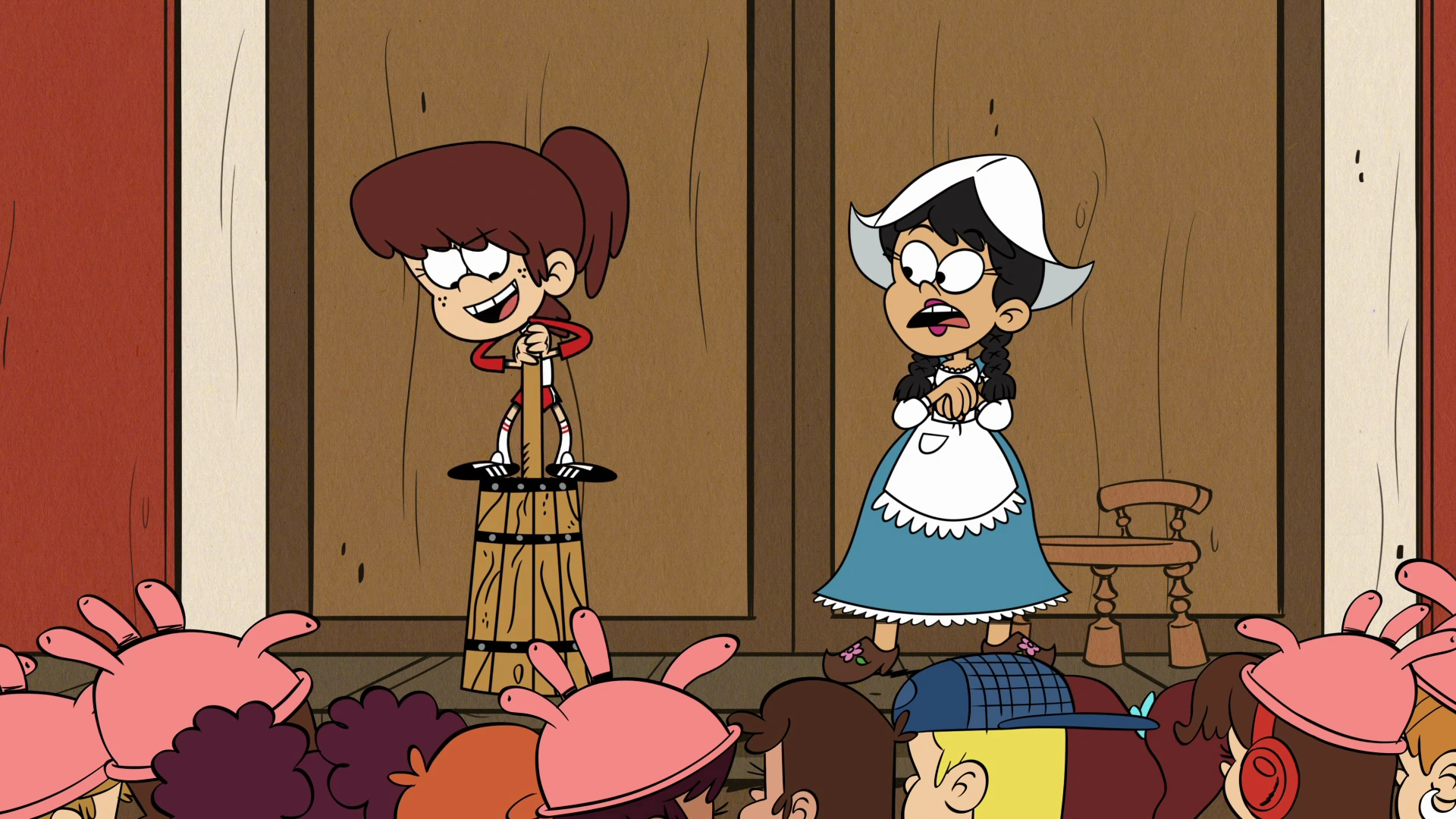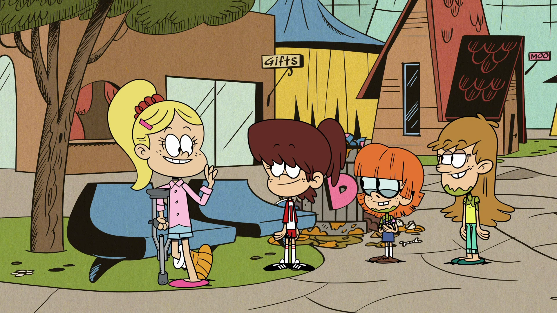 "Hurl, Interrupted" is the twenty-first episode (twenty-second in production order) of the fifth season, and the two-hundred-twentieth episode of The Loud House. Plot[]Lynn tries to stall her friends from riding the new coaster at Dairyland before they find out her big secret. Synopsis[]Lynn and her roller derby teammates, Margo, Maddie and Paula, arrive at the Burpin' Burger to celebrate their latest victory. As they eat, Paula reveals that because they won their latest match, they won tickets for a free entry into Dairyland. Margo expresses excitement to ride the park's roller coaster, Whipped Scream, where everyone who rides it is vulnerable of throwing up. As they discuss, Lynn is shown to be stricken by fear, but Lynn denies that she's scared of anything. At the middle school, Lynn approaches Clyde for help. Lynn tells Clyde that she and her friends are going to Dairyland, and that they want to go on Whipped Scream. However, Lynn is afraid of going on the roller coaster, as she has an intense fear of throwing up, having gotten it after one incident of her throwing up when she was younger, and it resulted in the taste of her vomit being stuck for a week. When Lynn asks how she can get over her fear of throwing up, Clyde tells her that she has to live with it, and to be honest with her friends by saying that she's not comfortable with riding the coaster. Lynn and her friends are at Dairyland. The next day, Lynn and her friends arrive to Dairyland. Margo and Maddie state that they want to go on Whipped Scream, but Paula admits that she doesn't want to ride it, saying she's not comfortable. Lynn attempts to confess as well, but before they can, Margo and Maddie give her a hard time by saying that while they go on Whipped Scream, she can go the baby rides. Paula takes back what she says, and Lynn, fearing that she'll be ridiculed if she confesses, decides to stall the two by saying that they should explore the rest of the park, to which they agree with. First, they decide to watch the process of churning butter, which takes around 60 to 90 minutes (the same amount of time it takes to properly churn butter). Second, they ride on Seas of Cheese, a tunnel of love style ride with animatronics. Suddenly, the ride shuts down, and Lynn decides to use that to stall even further. 60 minutes later, Margo says she's starving, and Lynn attempts to convince her to eat the ride's cheese curds and milk that keep the boats afloat. Disgusted and tired of waiting, Maddie and Margo decide to swim out of the ride, with Lynn and Paula following behind. Third, Lynn decides to visit the petting zoo, which is housing Ursula, "the angriest cow in Michigan". By now, Margo and Maddie have become suspicious of Lynn's stalling, and decide to not fall for any more of her tricks. As the girls wait in line at Whipped Scream, Lynn chugs a large cup of a cheese-flavored cappuccino. When Maddie sees that they're next, Lynn tosses her drink onto the ride's control panel in the hopes of shutting it off. While she succeeds at first, it suddenly reactivates and now goes twice as fast. Suddenly, Lynn hears Ursula bellow loudly. Excusing herself, Lynn decides to let Ursula loose from her corral, causing Tippy to tell the attendants that a mad cow is on the loose. As everyone flees the park for their safety, Margo and Maddie express dismay that they haven't gone on Whipped Scream yet, but Lynn claims that they can go another time. Suddenly, Tippy arrives and reveals to the girls that today was the final day Whipped Scream will be in operation, as it will be torn down to make way for a Dairyland hotel. Feeling bad for costing her friends their chance to ride a roller coaster on its final day of operation, Lynn excuses herself. Entering Dairyland, Lynn attempts to fight Ursula in an attempt to get her back in her corral. After a brief struggle, Lynn succeeds in getting Ursula back into her corral by treating her like a roller derby opponent. With Ursula contained, Lynn declares that the park can reopen. Catching up with her friends, Lynn ultimately admits that she didn't want to ride on Whipped Scream because of her fear of throwing up, and says that she didn't want to be ridiculed if she confessed. However, Margo and Maddie actually go easy on her, and say that if she's not comfortable, they won't force her to ride the coaster (Paula also reminds them that they were hard on her when she confessed, prompting them to apologize to her). Lynn has finally gotten over her fear of puking. As Lynn and Paula sit on a bench while Margo and Maddie ride Whipped Scream, Lynn suddenly feels nauseous. Lynn realizes that during her attempts to stall her friends, she would do things that would evoke her stomach, like eating the cheese curds and milk from Seas of Cheese, drinking the cheese-flavored cappuccino, and riding on Ursula, whose vigorous motions would shake her stomach. Just seconds after piecing things together, Lynn vomits into a nearby trash can. Lynn realizes that the experience wasn't as painful as last time, and discovers that she has gotten over her fear. At that moment, Margo and Maddie arrive, and Lynn tells them that she has gotten over her fear of vomiting, and decides to join them on riding Whipped Scream. As for Paula, she decides to stay behind to hang out with a boy who has an injured leg in a cast. Cast[]