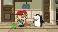 Willy is a penguin originally from the Royal Woods Pet Adoption Center. In "Animal House", Lana was against Sam's idea of sending the exotic animals at the adoption center to the Exotic Animal Playground, and her parents were against the idea of her adopting them, so she offered to let Mr. Grouse adopt Willy. He accepted the offer, and Lana promised that she would deal with any situations that Mr. Grouse couldn't handle. Eventually, it got out of hand, so she decided to move him, along with Larry and Squirt, into her attic and hide them there. She soon realized that none of the animals wanted to be stuck in an attic all day, so she reluctantly agreed to Sam's idea and sent the animals away. She gave Willy a fan that sprays water to keep him cool on the trip. Gallery[]Animal House[]