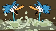The family of ducks are a family of white ducks consisting of a duck, a drake, and their five ducklings. Walt's girlfriend is probably related to them too, but it's never revealed how. In "Love Birds", Walt's girlfriend tried staying at a fake beach so she could be with him, but she missed them too much and cried over a photo of them. Walt then let her fly off to Florida. Frank[]