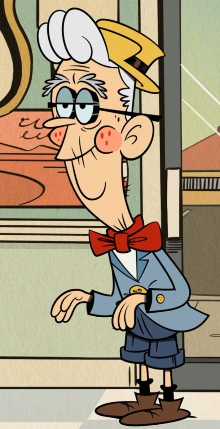Bill Buck is a minor character in The Loud House, who made his first appearance in "Pulp Friction". Background[]Bill Buck is the creator of Ace Savvy, but not much else is known about him so far. Appearance[]He's an elderly man, with gray hair behind his head, (he has no hair on top of his head) and he wears small, round glasses, and has eyebrows that are the same color as his hair. He wears a yellow collared shirt, a black leather belt, red suspenders, brown slacks, green socks and brown shoes. As seen in Clyde’s picture, when younger he had a full head of brown hair and wore a green polo shirt with a lighter green collar. Trivia[]