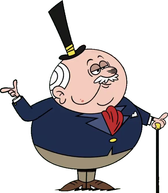Lord Tetherby is a minor character in The Loud House, who made his first appearance in "Out on a Limo". Biography[]Tetherby was the heir to the tetherball fortune, so he's now a very rich man with his own mansion, and a private club just for the high-class. He also has his own limo and butlers. He first appears in "Out on a Limo", where he influences Lincoln about how the good life is better without being with his sisters. When Kirby states to Lincoln that his limo time is up and Lincoln had to run to Tetherby's mansion, Tetherby dumped Lincoln as he no longer had a limo. At the end of the episode, Lincoln accepts that he was wrong and rude with his sisters and Kirby as Tetherby sees him with a limo again. When he offers to take Lincoln somewhere, Lincoln states that he is "full of baloney" as he and his sisters squirt him with it before Kirby drives them away. Tetherby later made a cameo in "Super Switcheroo-niverse". Personality[]He is a very smug and egocentric man, with no respect towards the poor, even his own relatives. He only likes to hang with rich people, or people with limousines, as shown when he refused to let Lincoln in his mansion after he lost his limo, and had his butlers kick him out of his driveway. Appearance[]Tetherby is a short, elderly man, with light fair skin, white hair, and a mustache. He wears a blue suit, with a red ascot, a white kerchief, a black top hat, khaki pants, and brown shoes. He also wields a black walking stick. When he's not on a trip, he wears a red dressing robe, and white slippers. Trivia[]