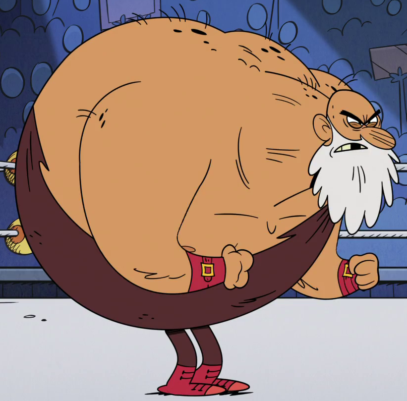 Santa Claus is a minor character in The Loud House who made his first appearance in "Can't Lynn Them All". Biography[]He appears as Lynn Loud's final competitor as the Brawl Monitor for Bella "Big" Bucks's wrestling circuit. But when Lynn tries to throw the match after having enough of being hated, Santa refuses to let her lose and tries to do so himself. However, Lynn manages to pin herself underneath him, marking Santa as the winner and allowing Lynn to retire from the wrestling circuit. Appearance[]Santa Claus is short and overweight with a long gray beard, just as in lore. His nose is round and his cheeks are red. For attire, he wears his signature red hat with a white fluffy rim and pom-pom, his red winter coat with white cuffs, a black belt with a yellow buckle, red pants, and black winter boots. He also carries a brown sack, which contains presents. He is also shown to have no hair under his hat. Gallery[]Can't Lynn Them All[]Schmitty[]