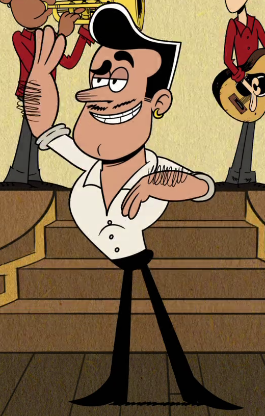 Darin is a minor character in The Loud House, who made his first appearance in "Cheater by the Dozen". Biography[]He is a dance instructor, who taught Bobby how to tango. He makes a cameo in "L is for Love", as a patron of the British restaurant Banger's & Mosh. Appearance[]He is a tall and muscular man. He has dark upwards hair, dark tan skin, and light facial hair. He wears a white collared shirt with rolled up sleeves, dark pants, and black boots. Trivia[]