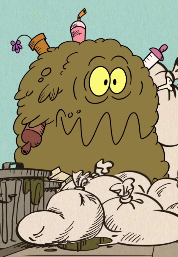 Trashy is a minor character in The Loud House. He’s a monster made of garbage, who appeared in the episode "Chore and Peace", where he was created when the Louds trash fused with Lisa's chemicals. In "Dream a Lily Dream", it’s revealed that Lily was afraid of him, Flip, and the tentacle monster up until the events of the episode, and would have nightmares about them. It ended when Lisa made an invention and went inside Lily's dreams with Leni, Lynn, Lincoln, and Lola and fought him in the dream. Appearance[]Trashy is a big, sentient monster composed entirely of all the accumulated garbage of the Loud family. He’s dark green with yellow eyes and black pupils, and has a big mouth. He has two arms but no legs, and attached to his body he has some of Lily's feeding bottles, and a flower pot. Before becoming bigger and stronger, Trashy was smaller, with prominent buck teeth. Trivia[]