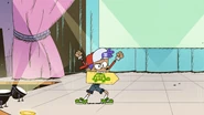 Doyle competed against CJ in a sign-spinning contest, sponsoring Pete's Pets.