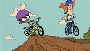 The pink bike is a bike that was previously owned by Lori, and is currently owned by Lynn. It first appeared in "Hand-Me-Downer". Appearance[]It is a pink bike, with glitter on it. It also has lots of heart and flower patterns on it. The bike seat is white, and the basket is light brown with a flower on front of it. It also has pink, blue, and white streamers. Gallery[]Hand-Me-Downer[]