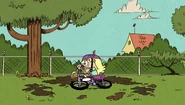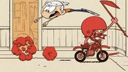 Luan's unicycle is a unicycle belonging to Luan. In "Funny Business", Luan works at a pirate-themed birthday party, juggling fruit on her unicycle. She later uses her unicycle to go to Maggie's birthday party and help Lincoln. In "One Flu Over the Loud House", Luan's unicycle is seen lying discarded in the hallway because Luan is sick. In "Predict Ability", Lincoln, in attempt to seem unpredictable, rides Luan's unicycle to school. In "Puns and Buns", Benny tries to get Luan out of the way by having her deliver burgers on her unicycle. Gallery[]Funny Business[]Fool Me Twice[]Predict Ability[]White Limo[]