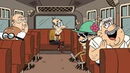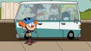 The Gigglin' Geezer is a bus that senior citizens from the Sunset Canyon Retirement Home ride and are entertained as they ride it. This bus first appeared in "Head Poet's Anxiety", where Luan worked as an entertainer, hoping that this would bring her closer to being the youngest person to perform at the Royal Woods Theater (but sadly, because of Lucy performing there first, Luan completely failed to achieve this goal.) Luan brought Lucy to the Gigglin' Geezer to help her with her poetry trouble. Lucy read a death-themed poem to the seniors, but later read a different poem about Pop-Pop. The Gigglin' Geezer later made a cameo in "Leader of the Rack". When Leni saw the bus arrive, she was delighted to have a visit from Pop-Pop and the other seniors. The design could possibly be based off a Chevrolet Express shuttle bus It is unknown if Luan still has this gig. Gallery[]Head Poet's Anxiety[]Leader of the Rack[]Lance Loud's truck[]