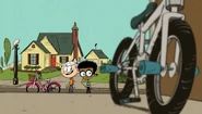The Sick Bike is a bike that is owned by Lincoln. It first appeared in "Hand-Me-Downer". History[]According to Leni, she was the first owner of the sick bike, which was purple in the flashback. Then Luna says Leni handed the bike to her, but she made some adjustments, by making it dark indigo, with spikes. Then Luna handed it to Luan, which she made into a yellow unicycle. Finally, Luan handed it down to Lynn, which she made into the bike that Lincoln now owns. Then at the end of the episode, Lincoln hands it down to Lana, who makes some unknown adjustments to it. Appearance[]The bike has light gray coloring, has a red plate with the number "1" on it, and light blue pegs on each side of the wheels. Trivia[]