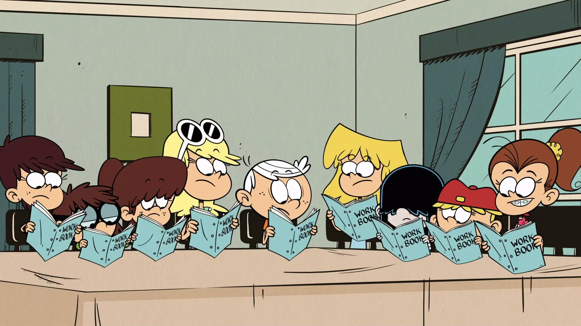 "No Place Like Homeschool" is the seventh episode of the third season and one-hundred-eighth episode of The Loud House. Plot[]Thinking it looks like fun, the other kids try to get in on Lola's home-schooling. Synopsis[]Lori reminds her siblings that they need to get ready for school. As the siblings wait for Luna to finish up showering, Lola is shown to be the only one not getting ready. It turns out that Lola is being homeschooled since it's pageant season, and that she needs more time to practice. The siblings are complaining about the fact that they have busy schedules as well, yet they still have to go to regular school. Lincoln, in the form of a presentation, is seeking permission from Rita and Lynn Sr. if they can be homeschooled. They agree, but on one condition: they need to get their work done, or else they'll be forced to go back to regular school. Homeschool Louds. Now that they're homeschooled, the siblings are free to do whatever they want all day. However, Lola keeps reminding her siblings that they need to work on their assignments soon. The siblings attempt to get some work done, but they can't get through the first page of their workbook without getting distracted. At night, the siblings are getting themselves ready for bed. Suddenly, Lola reveals that there's going to be a test tomorrow, stating that when someone is homeschooled, they're required to take a test every Friday to make sure they studied. To make matters worse, Lola warns them that if they fail, they're forced to go back to regular school. In Lori and Leni's room, the siblings are panicking, since they made no effort in studying. Lisa's initially not worried, but to her discovery, her test will involve an arts and crafts project, which she is not good at (due to stubby fingers). Lincoln insists that they pull an all-nighter to study, and everyone proposes to do it in Lisa's underground bunker. Upon entering, however, the siblings are irritated at the distractions they cause. Realizing that studying by themselves isn't the best solution, Lincoln concludes that their only option left is to ask Lola for help, despite the fact that she needs eight hours of sleep, or else she won't function. Despite that, they decide to ask Lola for help, and she reluctantly agrees. The next day, the siblings take their tests, and they all end up barely passing, except for Lola, whose lack of sleep resulted in her leaving her test unfinished. As a result, Lola is forced to go back to regular school the upcoming Monday. This leaves the remaining siblings feeling bad for Lola. Homeschool is only for those that need it most. On Monday, as Lola gets up to get ready for school, the remaining siblings are shown to be waiting in line for the bathroom. Lola is confused as to why her siblings are up so early, and they explain that they're going back to regular school because they admit that they were responsible for her failing her test, and are going back just so they won't interfere anymore. They also told their parents what happened, and they agreed to give her a second chance. Happy with their sacrifice, Lola hugs them, when suddenly, the siblings hear a school bus outside. Quickly rushing outside, the siblings discover that Mr. Grouse bought another CD, this time with vintage school bus sounds, much to their annoyance. Cast[]