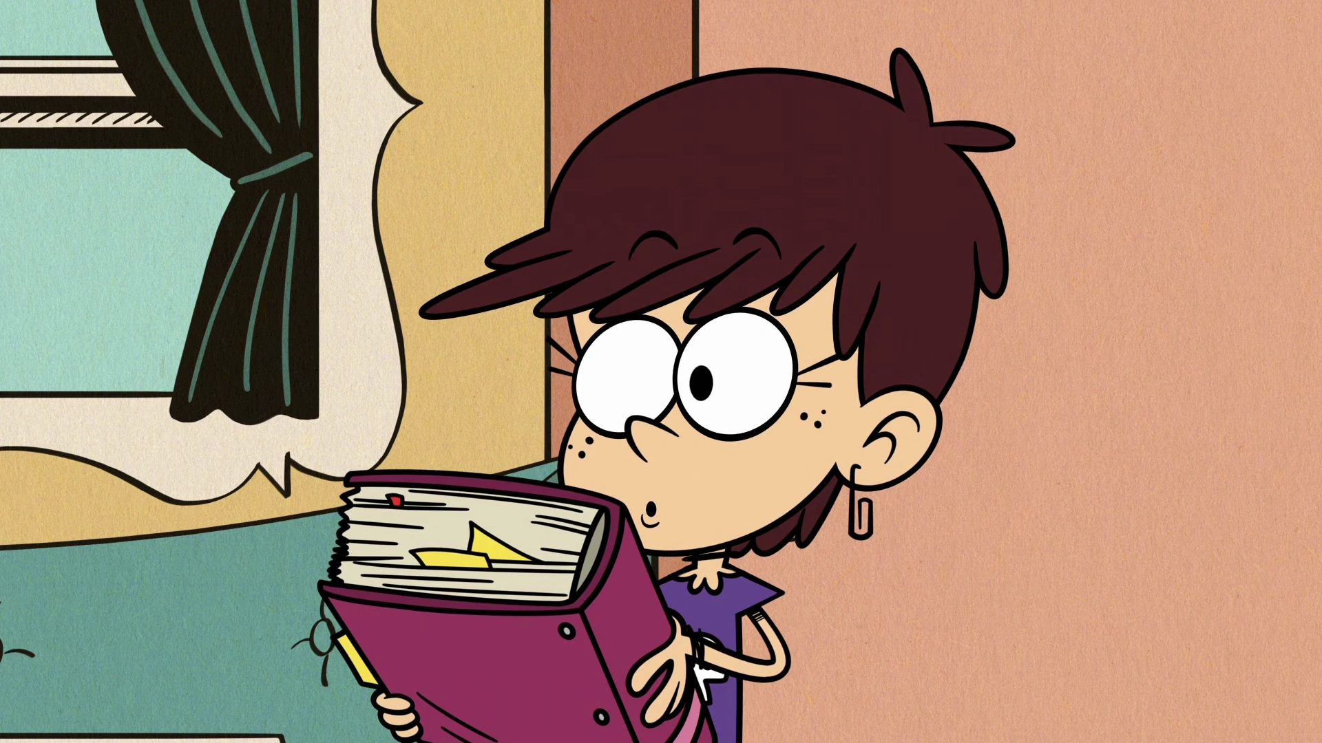 "Purrfect Gig" is the thirty-second episode of the fourth season, and the one-hundred-eighty-first episode of The Loud House. Plot[]Luna is hired to watch the McBrides' cats when they go out of town, but the job becomes more demanding than she imagined. Synopsis[] In order to get the V.I.P. pass to Mick's concert with Sam, Luna offers to catsit for the McBrides. While hanging out in her room, Luna is chatting with her poster of Mick Swagger, asking how she can get $50 for a VIP pass to his upcoming concert. Suddenly, Luna hears a knock at the door and answers it, where it's revealed to be Clyde, Howard and Harold. Clyde explains to Luna that he and his dads are heading to a McBride family reunion and need somebody to babysit their cats Cleopawtra and Nepurrtiti since their usual pet-sitter cancelled at the last minute. When Luna realizes that she could get paid this way (and because Sam has her VIP pass), Luna promptly asks if she can babysit, and the McBrides agree on the condition that she doesn't bring anyone else with her, since the cats get anxious when there's more than one person. At the McBride house, Luna discovers, to her shocking surprise, the manual on how to take care of the cats, which is revealed to be massive. She first reads that the cats need to be fed by 10:00 or they'll be cranky. However, it's 10:02, and the cats promptly attack Luna after she grabs the food. Next, Luna tries to walk the cats, but they go faster than Luna can handle. Afterwards, Luna tries to give them a bath because of all the food stuck to them, but when cats hear Luna utter the word "bath", the cats run off, prompting Luna to chase after them, ending it with her falling in the bathtub. When Luna bemoans to Mick on how little progress she's making, she suddenly gets the idea to call Sam, since she's an animal expert, much to Mick's disapproval, since she can't have anyone else with her. Sometime later, Sam arrives and reveals she brought along her younger brother, Simon. Despite some hesitance, Luna lets Simon in and convinces him to play with Clyde's VR headset. Throughout the night, Luna and Sam manage to take care of the cats with ease. After Luna and Sam get the cats to sleep by singing a lullaby, Sam leaves, but to her horror, Simon is still in the house and Luna unknowingly locks her out. Sam tries to enter through the front door, but the McBrides arrive back at that moment, forcing her to hide in a bush. Luna opens the door and lets the McBrides in, but upon seeing Simon still in the house, Luna attempts to prevent them from seeing him. After a few mishaps and close calls, Luna attempts to shove Simon out the window, but is caught by the McBrides. Luna kissing Sam for giving her money to her. Later, as Luna confesses that she brought someone over to help, she decides to give the money back to Howard and Harold. However, when Howard and Harold state that they appreciate her honesty, they're also impressed at how well they took care of the cats, so they decide to split the money evenly between them, and Sam immediately gives her half to Luna so she can buy her VIP pass. Luna is shocked at this, and kisses Sam on the cheek as affection and thanks. At that moment, the cats enter the room, having been woken up by Luna cheering. Luna and Sam quickly put the two cats back to sleep with their lullaby that even the McBrides, Simon and Mick (in Luna's thoughts) fall asleep to as well. Cast[]
