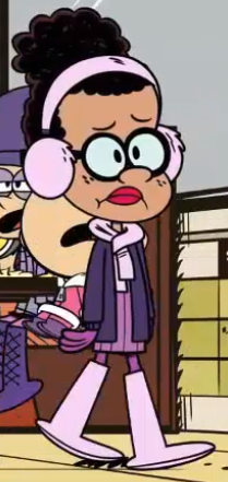Ellie is a minor character who first appeared in "Party Down". Biography[]Ellie is first seen in "Party Down" as a guest at Lori's party. In "ARGGH! You for Real?", she is seen at the sight of Hunter Spector's latest ghost hunt. In "Spell It Out", she is seen with some of Lori's friends talking to her. In "Health Kicked", she was seen as an audience member at the Royal Woods Arena. In "Legends", she was sighted at the airport. In "Mall of Duty", she was seen at the mall at the time when Rip Hardcore was doing a book signing. In "Snow Way Out," she was among those awaiting the arrival of Bobbie Fletcher. In "Roadie to Nowhere", she was seen watching Luna's performance. In "Selfie Improvement", she was seen on Lori's phone. In "City Slickers", she makes a cameo when Lincoln misses his ride. In "Rita Her Rights", she was seen outside of Royal Woods High School. In "Head Poet's Anxiety", she was seen in a flashback to Luan's bowling alley gig. In "Friendzy", she was among the friends that Leni invited over. In "Shop Girl", she was seen at a sale at Reininger's. In "Scales of Justice", she was among the tourists at Tall Timbers Park. In "Really Loud Music", she was seen watching Luna's performance as she sings "Play it Loud". In "Hero Today, Gone Tomorrow", she was seen at the time when Margo was being praised for her winning strike at the soccer game. In "The Write Stuff", she was at The Burnt Bean listening to Bud Grouse's poem. In "Can't Hardly Wait", she was seen as a patron at Lynn's Table being waited on by Kotaro. In "Leader of the Rack", she was seen in the food court. In "A Pimple Plan", she was seen at the park where Luan has her date with Benny In "Deep Cuts", she was seen with the theater club during the protest on which club Principal Rivers should save. In "Electshunned", she was interning at Royal Woods City Hall as an assistant where she complains about the printer being out of toner. Leni applies makeup to it. Appearance[]Ellie is a teenager with light tan skin, curly black hair in an updo, freckles, round black glasses, and red lipstick. She wears gold triangle dangle earrings, a dark purple jacket, a pink turtleneck dress, and black sneakers. Trivia[]