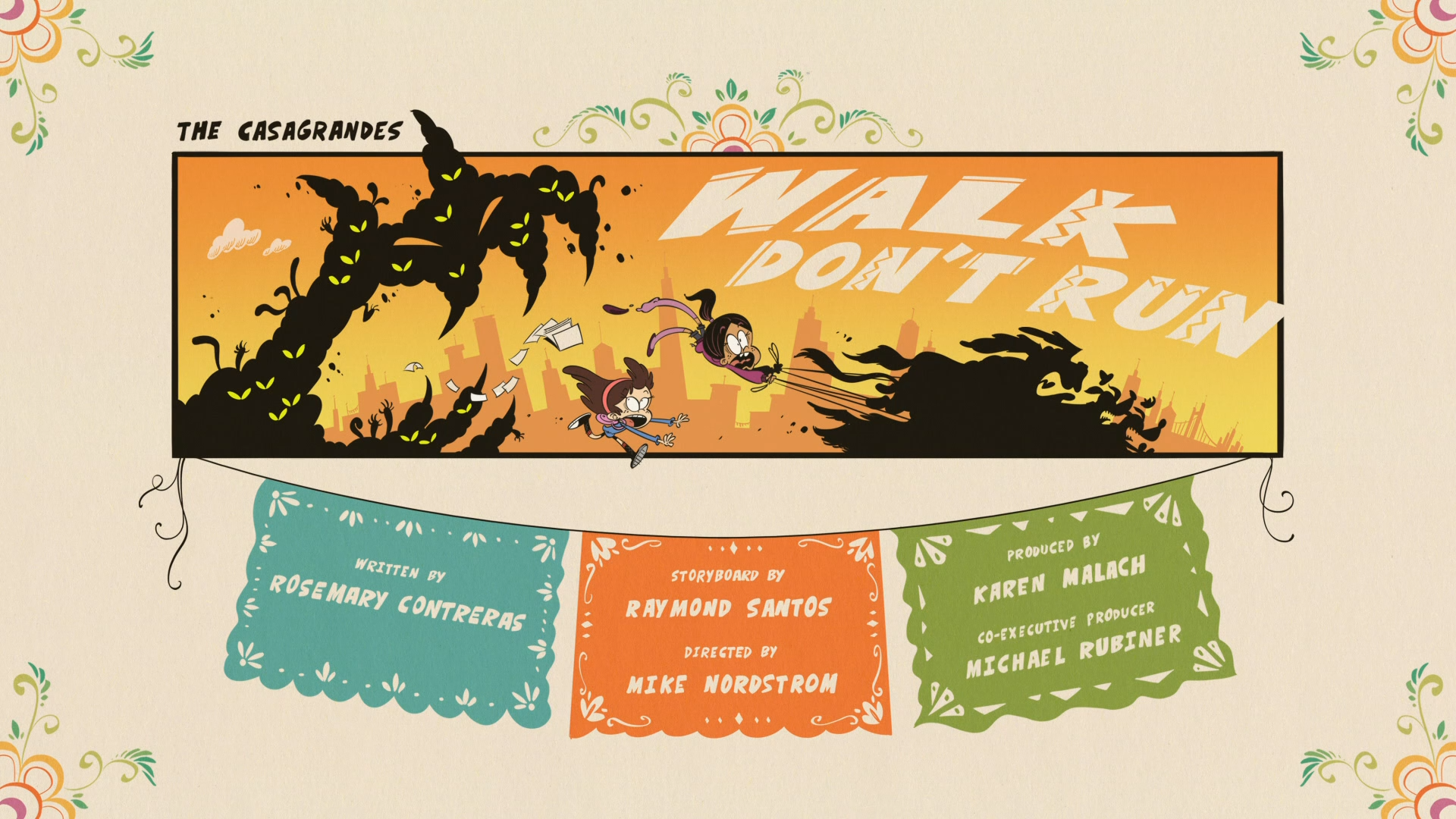 "Walk Don't Run" is the second episode of the first season of The Casagrandes. Plot[]Ronnie Anne and Sid start a dog-walking business to save up for a new skateboard in a plan that quickly gets out of hand. Synopsis[] Ronnie Anne offer to walk Nelson. While hanging out at the entrance of the Casagrande apartment, Ronnie Anne is performing tricks on her skateboard and Sid is swooning over Yoon Kwan in a magazine. Suddenly, the Street Cats attack and destroy Ronnie Anne's skateboard. When the cats leave, Ronnie Anne bemoans that her skateboard is destroyed and wishes that she could get a replacement board. At that moment, Mr. Nakamura exits the building, ready to walk Nelson. However, he happens to have severe back pain and can't take a few steps without his pain kicking in. Ronnie Anne and Sid offer to walk Nelson, and Mr. Nakamura thanks the girls, and proceeds to pay them for their help. The girls realize that if they get enough money walking Nelson, Ronnie Anne will be able to afford a new skateboard, and Sid can buy a cardboard cutout of Yoon Kwan. As the girls walk Nelson, they theorize that with the pace they're going, they can get their items in two-and-a-half months. Seeing how far away that is from now, Ronnie Anne decides that they should expand their business by walking the dogs of all the other tenants of the apartment building. From this point on, Ronnie Anne and Sid proceed to walk the dogs of everyone they know, which include: